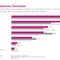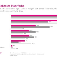 The differences between the sexes are striking: While women are equally fond of the colours blonde and brown, only one in four men like blonde hair on themselves. 43 percent of men, however, prefer blonde on women. In general, however, the hair colour of other people does not seem to be so important to those surveyed. 37 per cent stated that they don't care about other people's hair colour. Among women, the figure is as high as 44 per cent. With increasing age, the hair colour of others becomes less and less important to people: Half of women over the age of 50 state that they have no favourite hair colour on others.