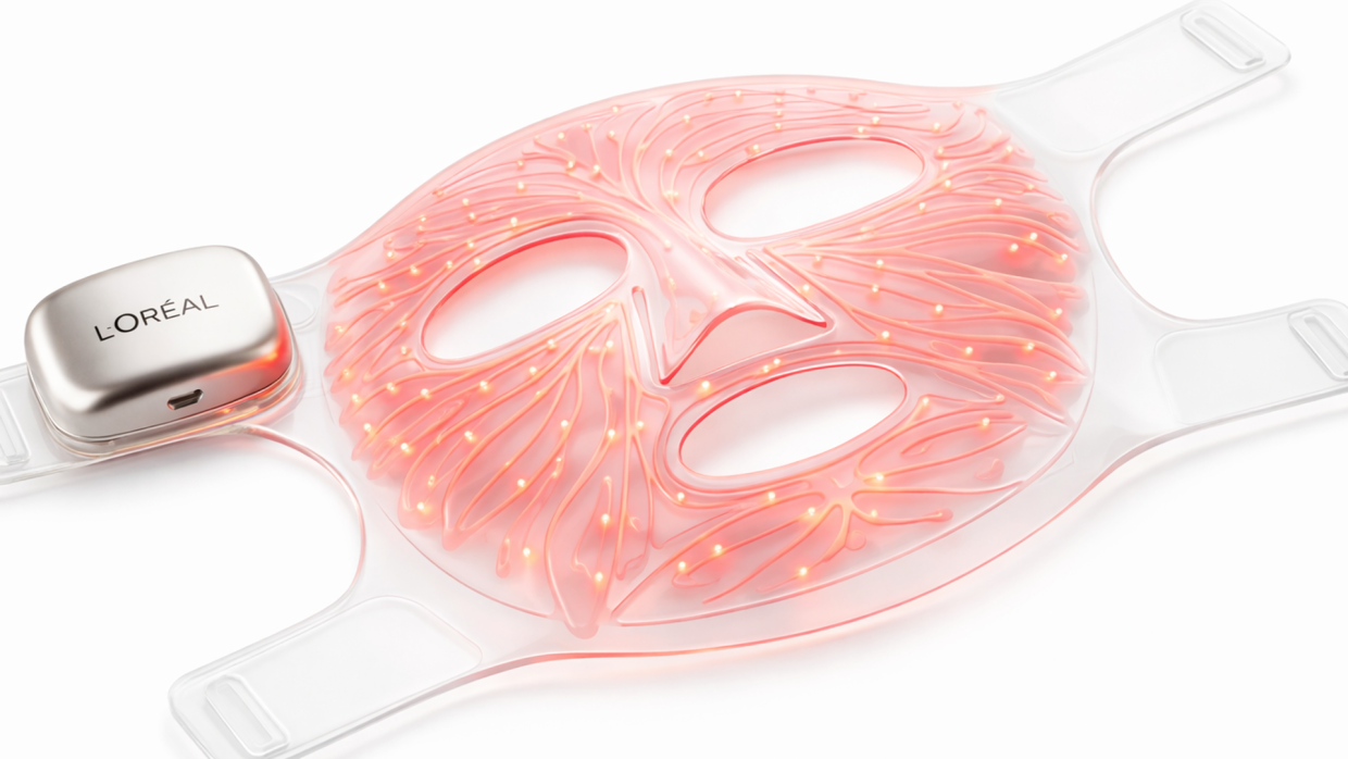 The L'Oréal Group has unveiled a novel LED face mask. The ultra-thin, flexible silicone mask, which is currently still in the prototype stage, emits light directly onto the face. The company is convinced that the mask reduces visible signs of skin ageing such as fine lines, sagging skin and uneven complexion through red light and near-infrared light. The lightweight and flexible design is intended to integrate well into the daily skincare routine. The light is said to visibly tighten and smooth the skin while evening out skin tone. The LED mask was developed by L'Oréal in collaboration with iSmart, a global leader in LED device innovation.