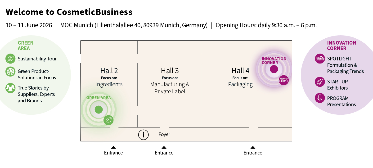 Here you will find the most important tips for your visit to CosmeticBusiness.